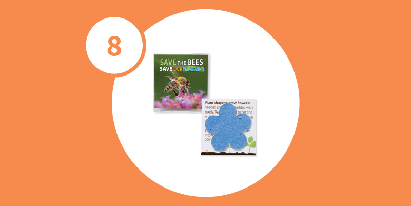 This seeded paper packet offers an economical and meaningful way to share your message. Choose from 14 standard-seeded paper colors and a variety of classic shapes to suit your design. Each packet includes a full-color message card with planting instructions printed on the reverse side, with green text as the default or the option to specify a custom text color. The seeded paper shape and message card are packaged together in a clear compostable sleeve for a polished and eco-friendly presentation.