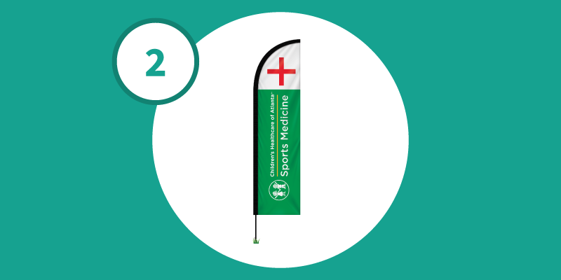 This 8-foot, double-sided, portable half-drop banner with hardware kit instantly increases brand visibility in any setting. The vibrant display can be customized with a full color digital imprint, and pricing remains the same regardless of the number of colors used or the complexity of the design. The kit includes a sectional aluminum and fiberglass pole, carrying case, and ground spike for easy setup and secure placement.