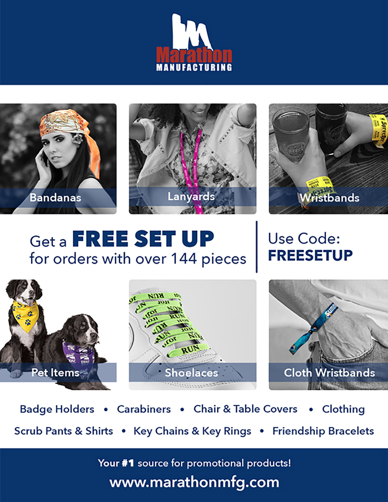 Free setup, proofs, samples or shipping